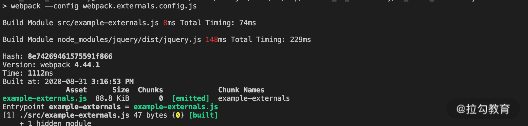 - externals 配置的依赖包需要单独指定依赖模块的加载方式:全局对象、CommonJS、AMD 等。