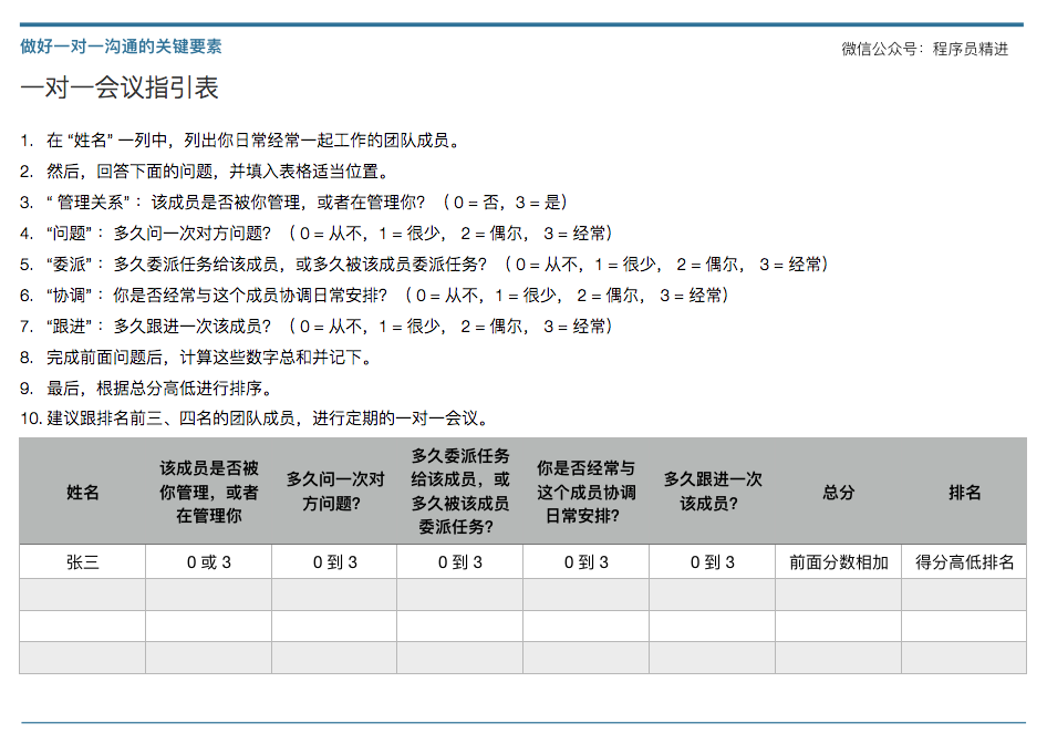 在本文中,我将跟大家分享举行高效一对一会议的原则,以及如何建立一对一的会议议程,如何分配待办事项并回顾待办事项,如何评估会议结果并跟进完成情况等。