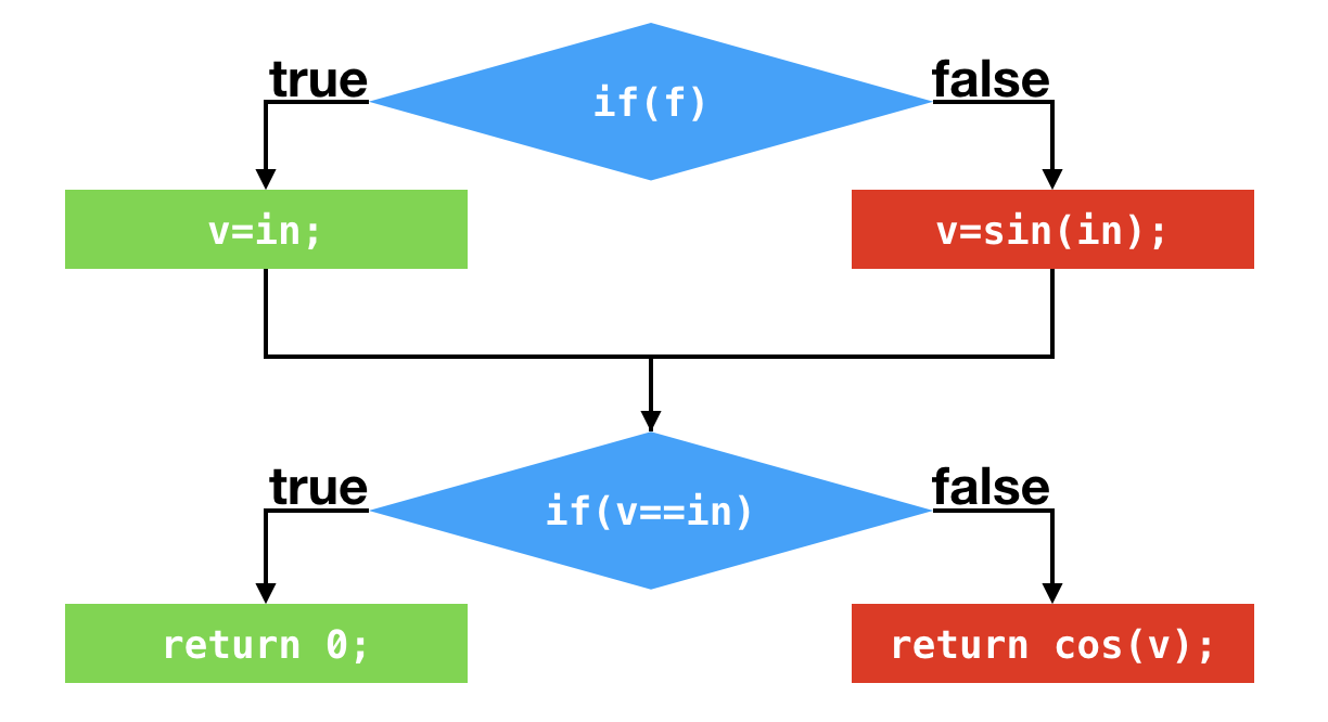 第二个条件判断则测试局部变量 v 是否和所输入的 int 值相等。如果相等,则返回 0。如果不等,则将局部变量 v 经过一番运算之后,再将之返回。显然,当所输入的 boolean 值为 true 的情况下,这段代码将返回 0。