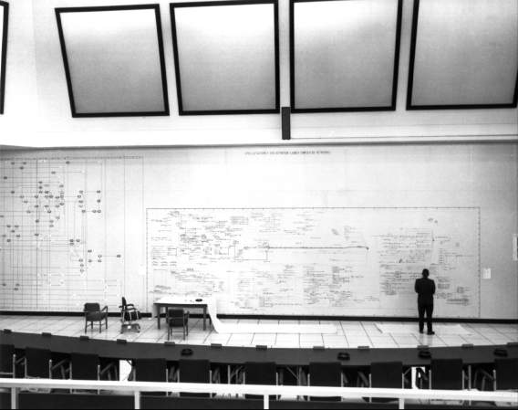 但阿波罗项目是个超大型项目,所有的任务分成了 A、B、C 三级,到 C 级已经有超过 4 万个任务。要给这四万多任务排出项目计划就太不容易了,一共要几十名分析人员来协调和跟踪所有的任务。最终列计划的图表贴在墙上超过 100 平米。