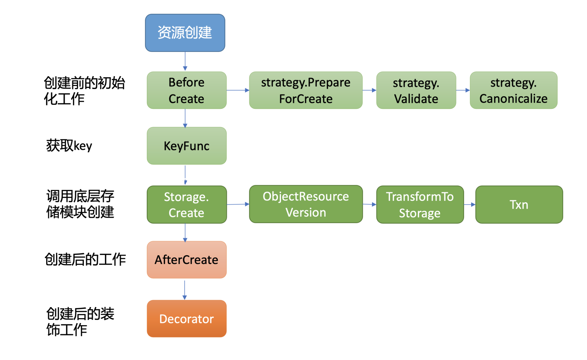 }执行完BeforeCreate策略后,它就会执行Storage.Create接口,也就是由它真正开始调用底层存储模块etcd3,将nginx Deployment资源对象写入etcd。