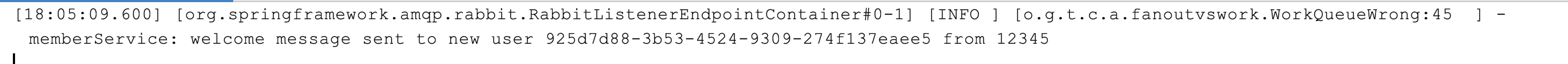 [17:01:20.603] [org.springframework.amqp.rabbit.RabbitListenerEndpointContainer#0-1] [INFO ] [o.g.t.c.a.compensation.MemberService:28 ] - memberService: welcome new user 5