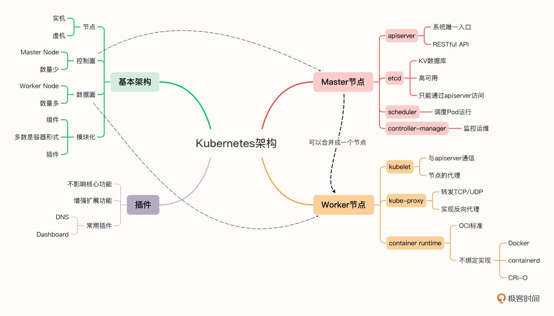 由于Kubernetes的抽象程度比较高,有很多陌生的新术语,不太好理解,所以我画了一张思维导图,你可以对照着再加深理解。