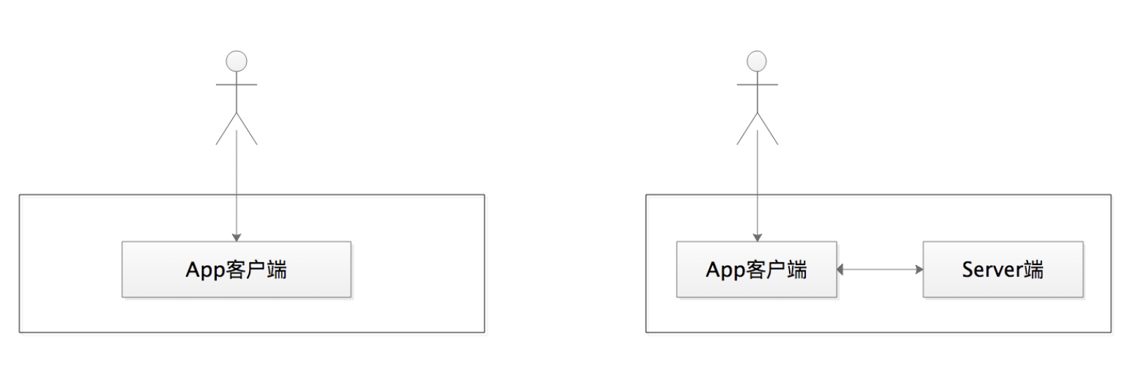 那总结下来呢,移动 App 可以分为两类,一类是没有 Server 端的 App 应用,一类是有 Server 端的 App 应用。